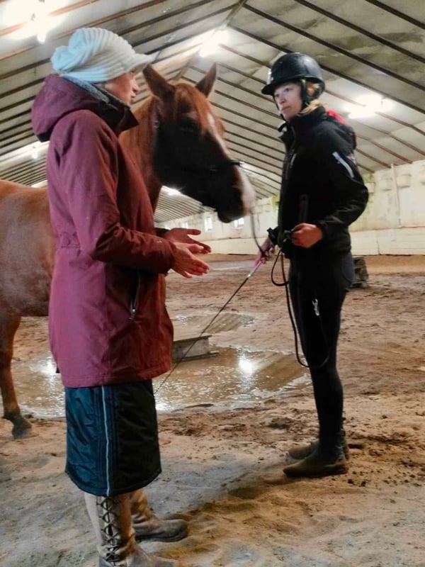 - Live Zoom-session fra ridebanen – med bluetooth-headset og telefon kan vi arbejde direkte med dig og din hest i træningsøjeblikket.